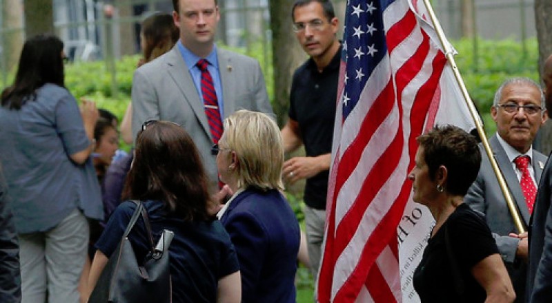 وذكر تلفزيون "فوكس نيوز" نقلاً عن مصادر في الشرطة أن "الإعياء" بدا على كلينتون أثناء ركوبها حافلة صغيرة لمغادرة مكان المراسم.