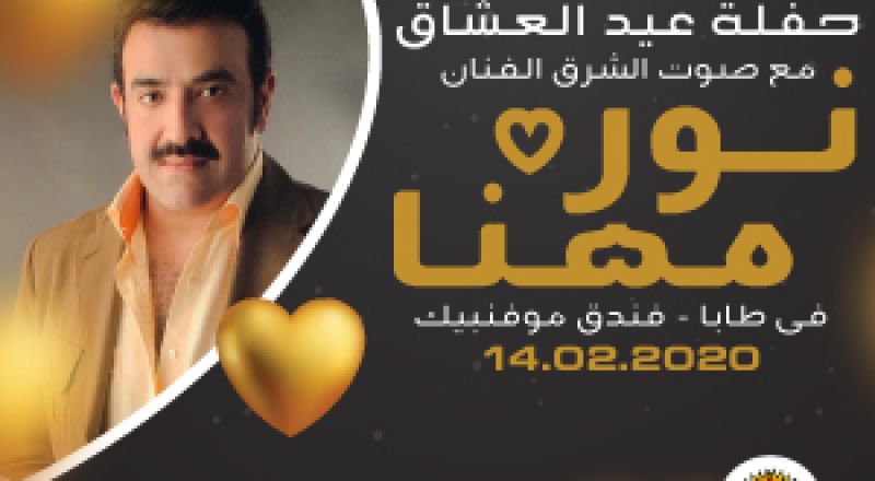 الأربعاء 05/02/2020 11:00حفلة عيد العشاق مع صوت الشرق نجم الغناء والطرب العربي الأصيل نور مهنا